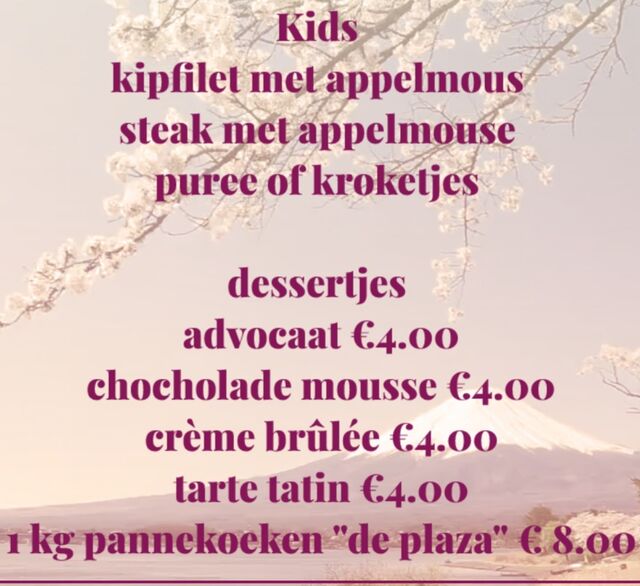 De plaza Moederdag ontbijt op 9 mei 2021 ontbijt 2 personen 60 euro Cava chocolade melk 500 ml fruitsap 500 ml Enz...